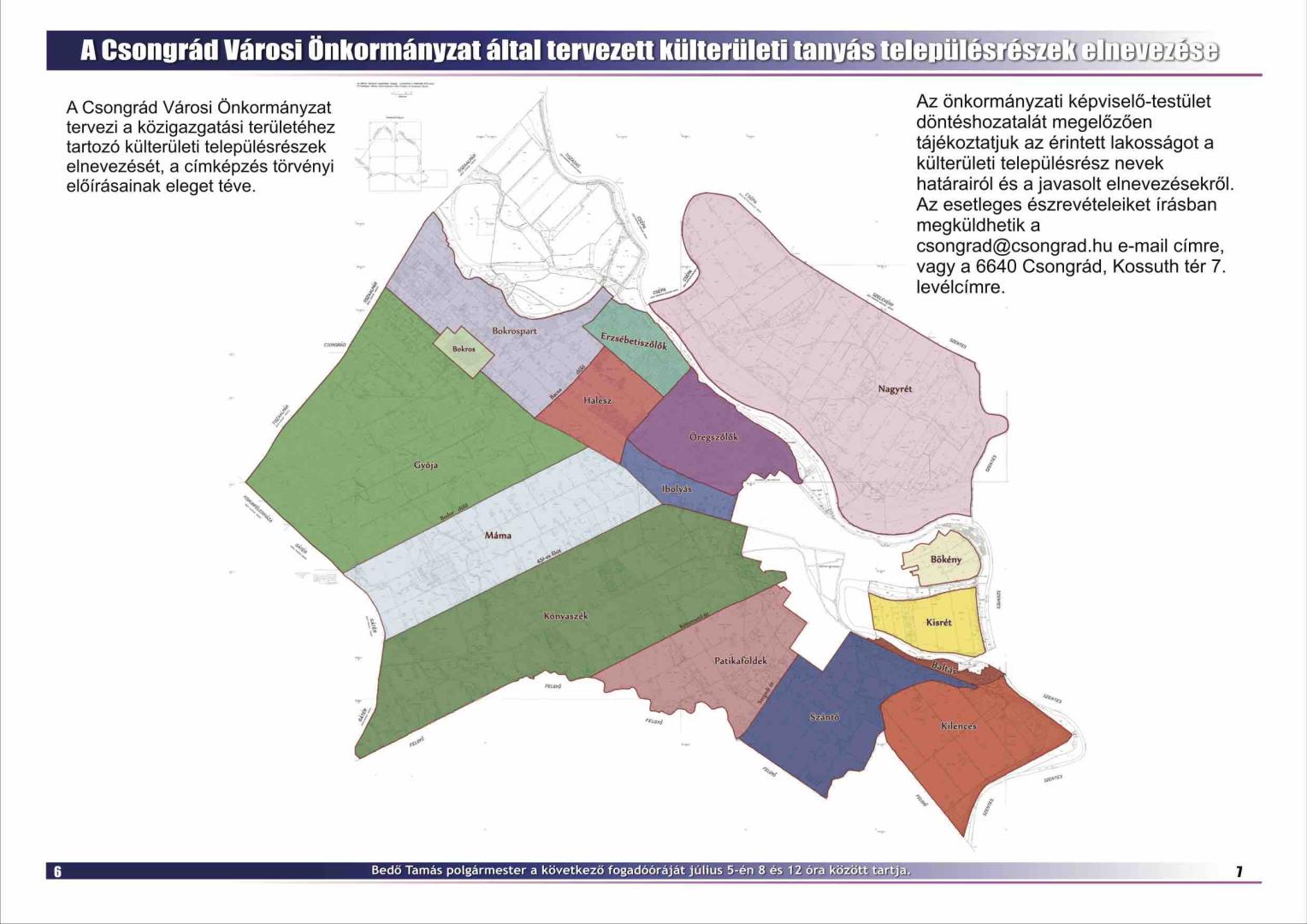 Az Önkormányzat által tervezett külterületi tanyás településrészek elnevezése