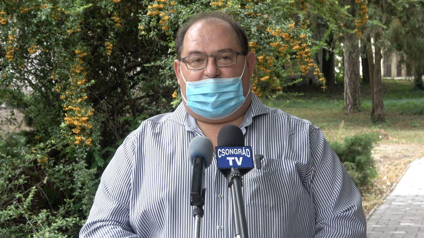 Bedő Tamás keddi sajtótájékoztatóján ismertette a karanténra vonatkozó járási adatokat. Október elsejétől hőmérsékletméréssel lehet belépni az iskolákba. Forrás Csongrád - csongrad.hu