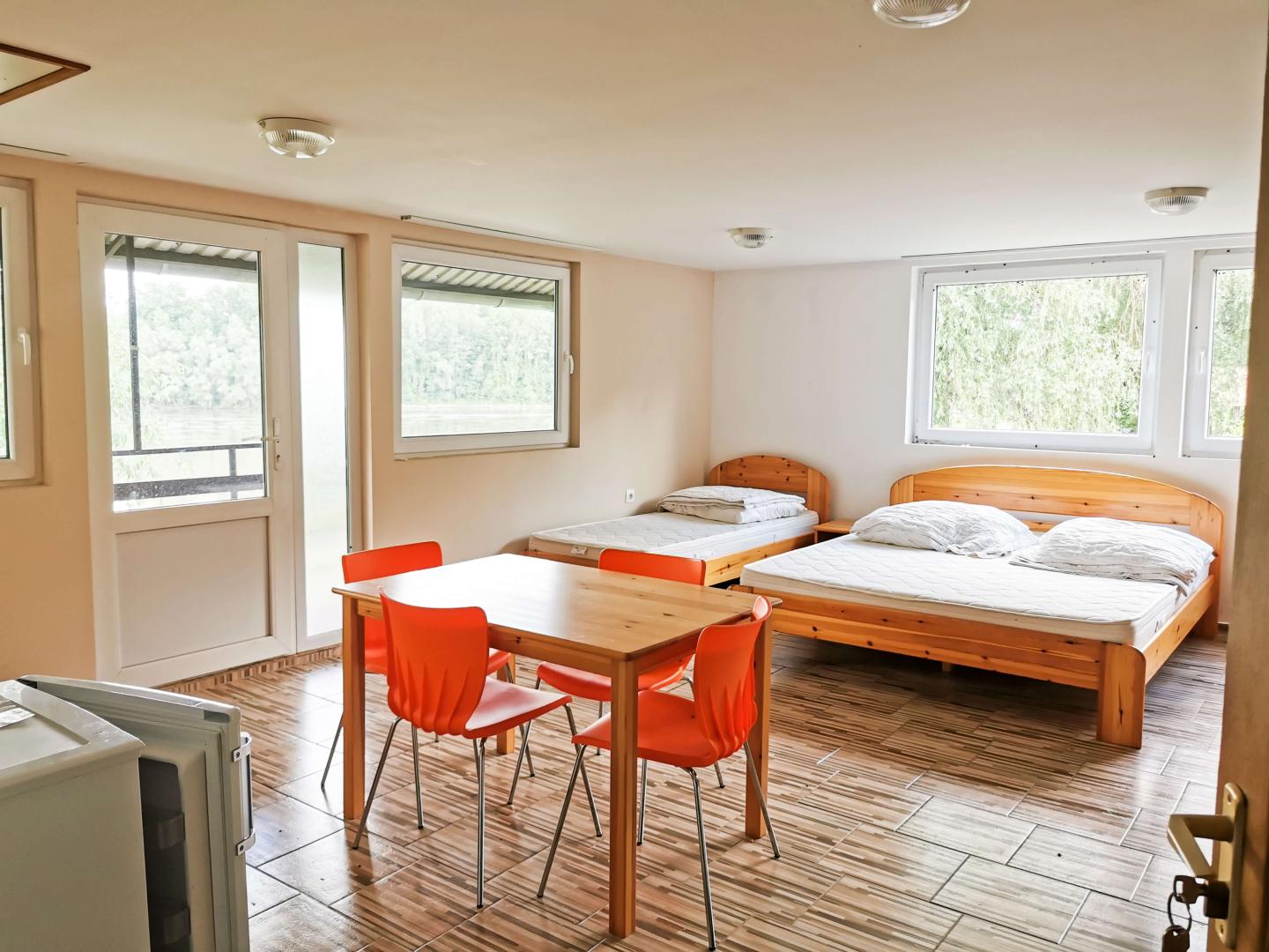 konyha résszel. Közülük három a kempingre néz, három, pedig a Tiszára, gyönyörű