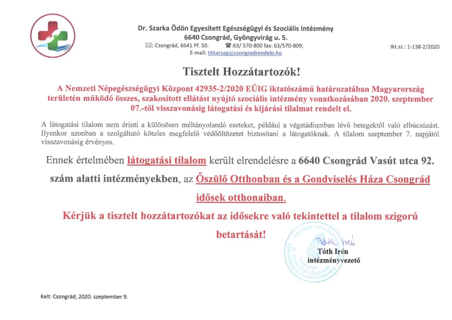 Látogatási tilalom, térítési díj fizetés